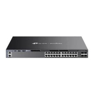 Switch administrable L3 Omada 24 ports Gigabit Stackable avec 4x slots 10G – Budget PoE total usqu’à 720W – Empilage physique pour la redondance et les performances – Fonctionnalités L3 : RIP, OSPF, ECMP, VRRP, PIM-DM, serveur/relais DHCP
